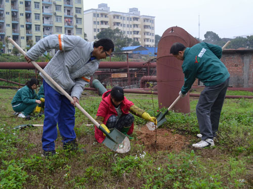 當天一大早,公司各部門、車間員工便帶上勞動工具,興高采烈地來到廠區內劃分好的植樹區域,積極地投入到植樹活動中,員工們挖坑、擺樹種、培土、澆水灌根;對廠區內原有的花草樹木進行松土、施肥、噴藥、修剪,對綠化帶進行維護;大家分工有序、有條不紊,工作場面熱火朝天。經過一天的辛苦勞動,員工們共種植樹苗2400多棵。此次活動營造了全員植綠、愛綠、護綠的濃厚氛圍,嫩綠的樹葉和嬌紅的花朵在春雨的滋潤下愈發生機勃勃,為公司廠區增添了一道美麗的風景線。