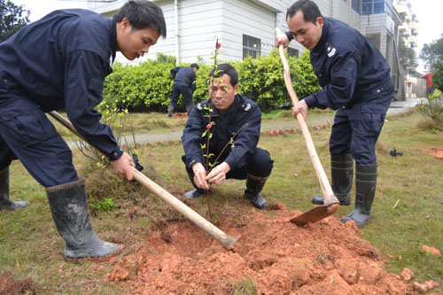 熱火朝天的植樹活動場面。
