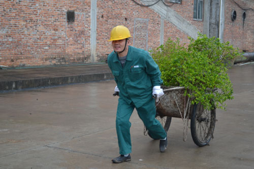 員工正在搬運樹苗,做好植樹的后勤服務工作。