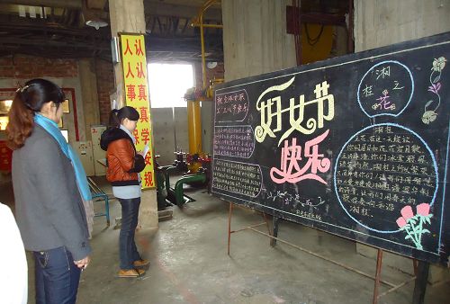 在板報評比活動中,湘桂公司的女職工們用手中小小畫筆描繪出五彩繽紛的藍圖,以女性獨有的真摯情感和細膩筆觸抒發了她們對本職工作的無限熱愛和對美好生活的由衷贊美。