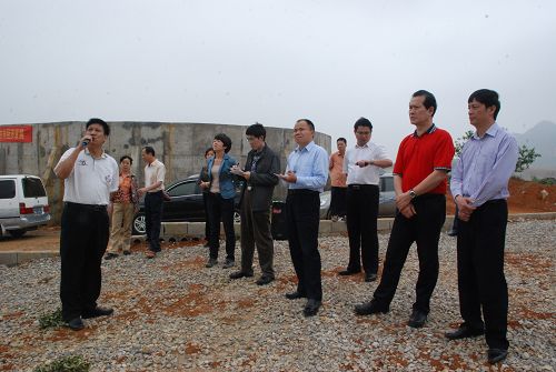 農(nóng)業(yè)部政策法規(guī)司產(chǎn)業(yè)政策處處長王忠海(前右四)、自治區(qū)農(nóng)業(yè)廳政策法規(guī)處處長何彬(前右二)等領(lǐng)導(dǎo)聽取湘桂公司孔香屯甘蔗種植示范基地的發(fā)展情況。