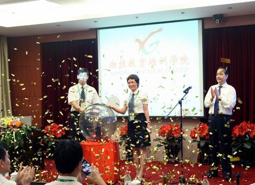 湘桂集團副總裁刁曉(中)、湘桂教育培訓學院副院長廖志林(左)啟動水晶球。