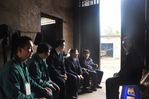 集團人力資源總監廖志林(右)及湘桂公司領導到老人家了解老人的生活近況。