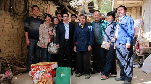 湘桂集團董事黃建軍(中)到困難蔗農家中慰問。