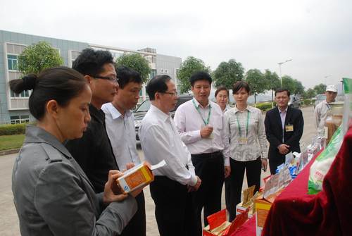 自治區黨委副書記危朝安(左四)參觀湘桂集團產品。