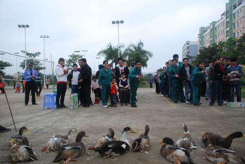 套鴨子活動點參與人數(shù)眾多,眾人都想一試身手。