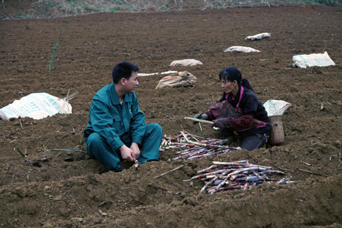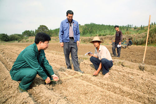 湘桂集團監事、集團督察室主任張守輝幫助文利鎮甲叉村蔗農種蔗。