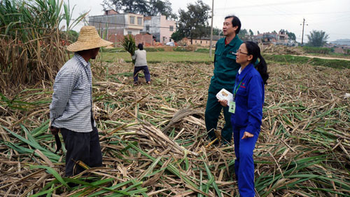 宣傳調研組向蔗農了解生態肥推廣情況。