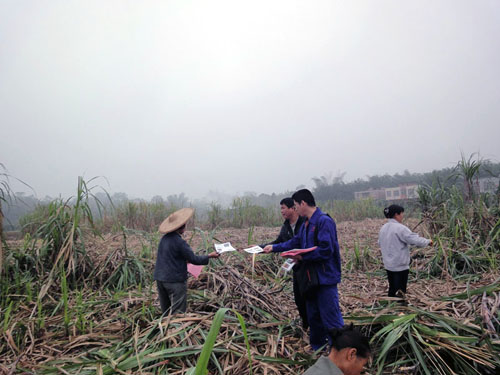 宣傳調研組根據各制糖公司蔗區情況,馬不停蹄地奔走在各村屯間,挨家挨戶將公司的甘蔗種植扶持政策、甘蔗優良品種種植方法和甘蔗專用生態肥正確施用方法送到蔗農手中,并對他們在甘蔗種植中所遇到的各種問題進行解答,引導蔗農科學、合理種蔗。同時,宣傳調研組將蔗農對各制糖公司工作的建議進行收集,實地勘察蔗區發展存在的問題一一記錄,幫助各公司盡快為蔗農解決問題。截止3月2日,宣傳調研組累計發放扶持政策等宣傳資料超過1800份,懸掛宣傳橫幅161條,使蔗農對甘蔗種植扶持政策、甘蔗良種特性、科學施肥等知識有了進一步的了解,極大地激發了蔗農多種甘蔗、科學種蔗的熱情,活動得到了廣大蔗農的一致好評。