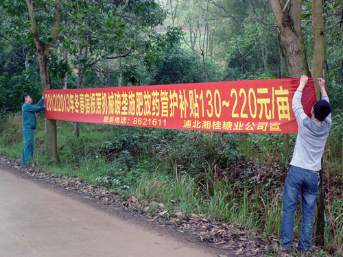 宣傳調研組在崇左湘桂公司蔗區懸掛宣傳橫幅。