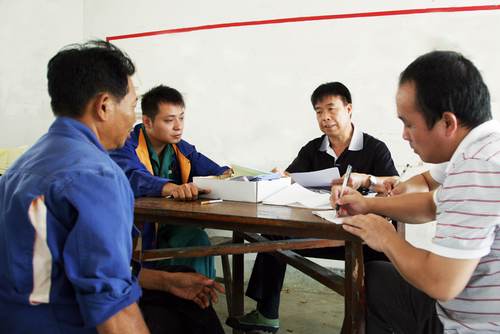 集團董事局監察室主任張守輝(右二)向浦北湘桂公司農務人員了解情況。