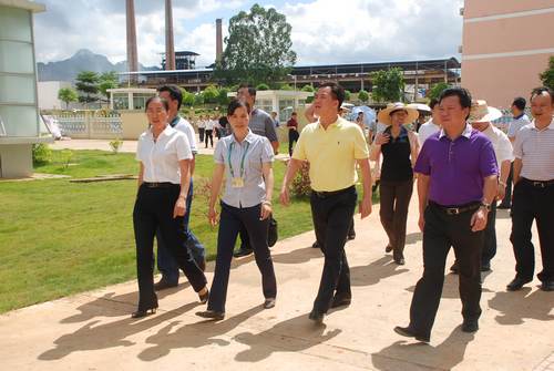 崇左市江州區委書記黃云革(前右一)、區長陳光恩(前右二)到湘桂福萊順酵母公司廠區考察。