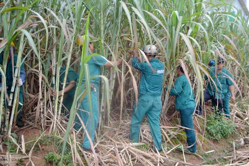 公司員工進入蔗地剝除枯蔗葉。