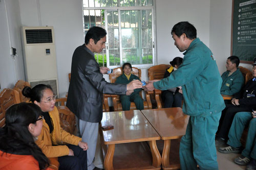 江州區總工會主席吳凌超向公司困難員工發放慰問金(銀行卡)。