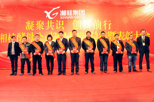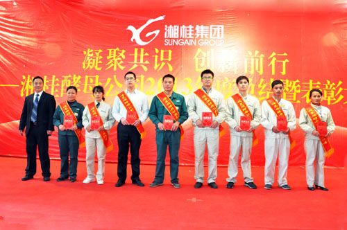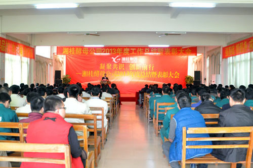 2014年1月14日~17日,湘桂集團下屬子公司廣西湘桂福萊順酵母有限公司(以下簡稱酵母公司)在湘桂循環經濟產業園隆重召開主題為“凝聚共識,創新前行”的2013年度工作總結暨表彰大會。本次大會為期4天,回顧和總結了酵母公司2013年度工作取得的成績和存在的問題,并對2014年度工作進行部署。