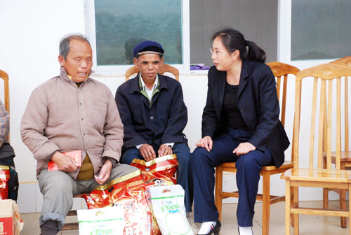 崇左湘桂公司副總經(jīng)理黃春梅與板利鄉(xiāng)老人親切交談。