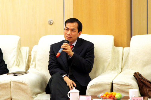 湘桂房地產公司董事楊紹強在座談會上發言。