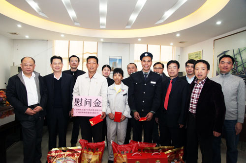 湘桂房地產公司董事勞慶鑫、楊紹強,監事會監事長張守輝,監事黃建軍、潘昱光,集團總裁助理馮小兵、集團人力資源中心經理徐瑞芬,湘桂房地產公司副總經理辛樹志、葛彬、李懷麟,祥和物業公司總經理滕強等領導參加了慰問活動。