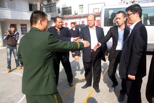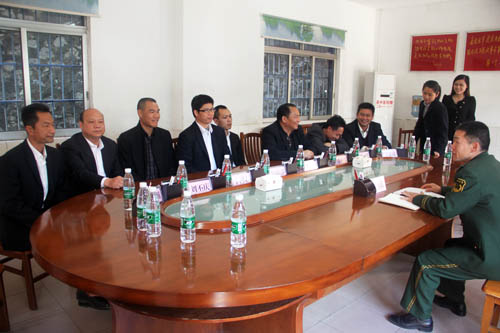 湘桂房地產公司董事勞慶鑫(右二)到靈山武警中隊慰問。