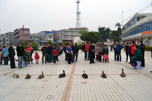 集團監事會監事、靈山湘桂公司副總經理劉丕慶參加游園活動套鴨子。
