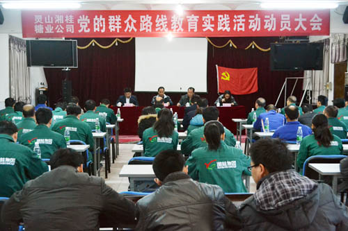 3月10日,湘桂集團下屬子公司廣西靈山縣湘桂糖業有限公司(以下簡稱靈山湘桂公司)黨委,召開黨的群眾路線教育實踐活動動員會,傳達和學習自治區黨委、市委及縣委對開展黨的群眾教育實踐活動的通知要求,公司黨委書記、總經理滕家偉及縣第六督導組組長余振東作了動員講話,公司領導班子成員、部門負責人、全體黨員參加了會議。