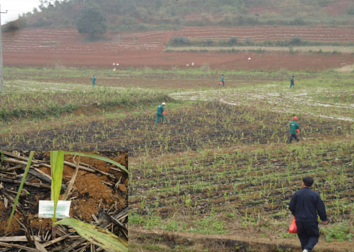 圖為釋放赤眼蜂現(xiàn)場(chǎng)。