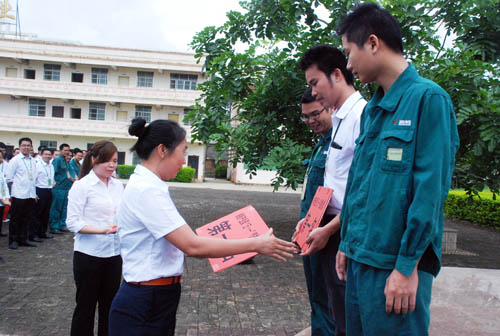 崇左湘桂公司總經理黃春梅為獲獎員工代表頒獎。