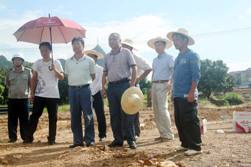 2014年7月12日上午9∶03,夏日驕艷、晴空萬里,湘桂·盛天名城營銷中心開工典禮在靈山長崗嶺項目現場進行。