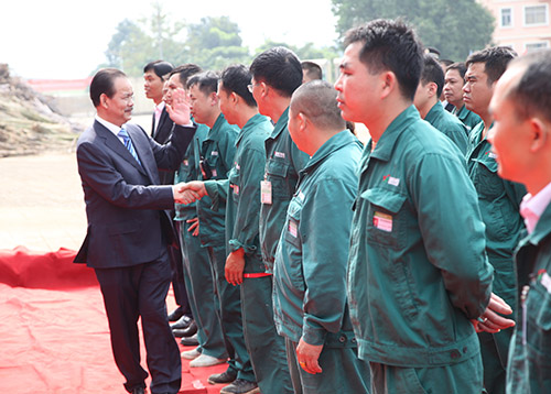 湘桂集團黨委書記、董事局主席、總裁勞建銘和員工們親切握手,加油鼓勁。