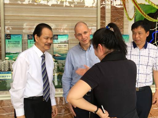 隨后,勞建銘先生帶領蒲建菲先生一行參觀湘桂房地產公司,并向浦建菲先生一行介紹了湘桂房地產公司的開發情況。勞建銘先生說,湘桂集團自2007年進駐靈山并陸續開發建設“湘桂·盛世名城”和“湘桂·盛天名城”兩大項目,開發面積超120萬平方米,始終秉承“高起點、高標準、高品質”的經營理念,產品深得社會各界和廣大客戶的認可,蒲建菲先生一行對湘桂房地產公司的經營理念和穩健發展給予了高度贊許,并祝愿湘桂房地產公司今后取得更大的成績!