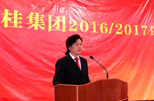崇左湘桂公司黨委書記、總經理黃春梅作公司2016/17年度工作報告。