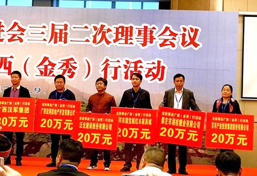 捐贈儀式上,不少愛心企業紛紛捐款出資,以期為廣西光彩事業的長足發展貢獻一己之力。湘桂集團自創業以來始終奉行“回饋社會 奉獻國家”的經營理念,集團及下屬各子公司數十年如一日的支持并參與助學、幫困等各項公益活動;積極參與精準扶貧、產業脫貧活動;在本次捐贈儀式上,集團監事會主席陳輝代表崇左湘桂公司捐贈20萬元,再次用實際行動助力廣西光彩事業發展壯大,踐行光彩精神,用心回饋社會。