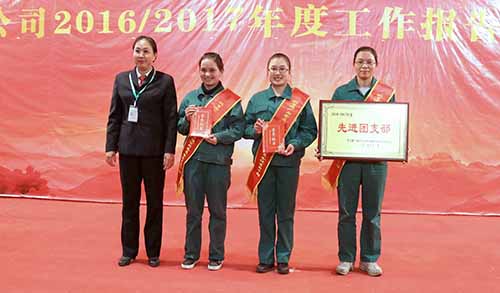 黃春梅與公司2016/17榨季優秀團干部、優秀團支部代表合影。