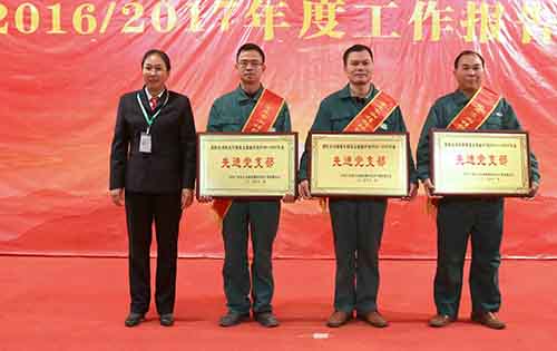 崇左湘桂公司領導班子成員與榮獲公司2016/17榨季先進工作者合影。