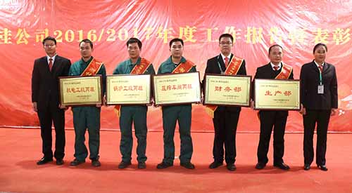 黃春梅、郭光海與公司2016/17榨季先進部門、先進班組代表合影。