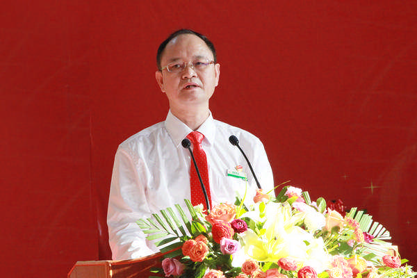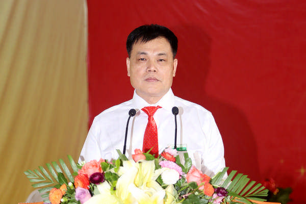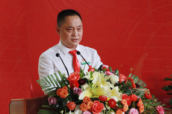 來賓湘桂紙業總經理吳勇峰作年度工作報告。