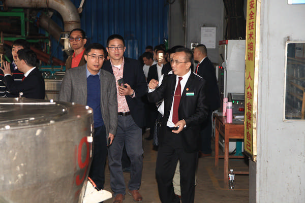 湘桂集團董事,湘桂華糖董事長、總裁謝華誠陪同嘉賓參觀生產車間。