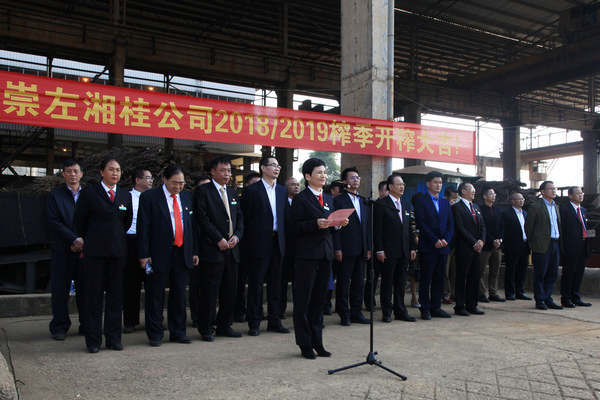 集團經營管理領導班子成員及崇左湘桂公司經營管理班子成員、員工代表參加了開榨儀式。