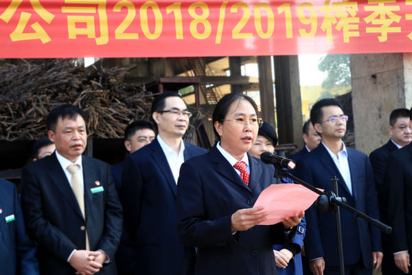 江州區委副書記、區長王耀雷在開榨儀式上致辭,王耀雷對崇左湘桂公司自2000年扎根江州、扎根崇左經營發展以來在承擔社會責任、助力脫貧攻堅戰、積極推進甘蔗品種改良及蔗區“雙高”基地建設、糖業節能降耗、降本增效、做強做優蔗糖循環經濟產業等方面作出的突出成績,對推動江州區蔗糖產業發展及農民脫貧致富作出的重要貢獻表示肯定和贊賞。他表示,2018/19榨季,江州區委、區政府將繼續貫徹落實習總書記關于鼓勵、支持和引導民營企業發展的重要指示精神,把產業發展和精準扶貧脫貧攻堅戰有機地結合起來,依法保護民營企業的合法權益,積極為民營企業發展營造良好的法制環境和營商環境,加強政企合作,共同實現江州區、崇左市2018/19榨季工作目標。希望崇左湘桂公司認真貫徹執行崇左市、江州區的榨季工作部署,搶抓機遇,再接再厲,開創湘桂事業發展的新局面,努力為江州區、崇左市的發展作出新的、更大的貢獻。