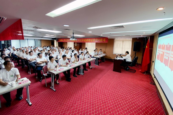 主題黨日活動現場。 今年是中國共產黨成立99周年,為回顧黨的光輝歷史,謳歌黨的豐功偉績,進一步激發黨建工作活力,引導廣大黨員樹牢“四個意識”、堅定“四個自信”,堅決做到“兩個維護”,充分發揮先鋒作用、永葆先進本色,加快推動集團產業高質量發展。2020年7月1日,湘桂集團黨委舉行慶祝“七·一”主題黨日活動,集團黨委書記勞建銘上“初心•使命•奮進 慶祝建黨99周年”主題黨課,集團黨委副書記刁曉主持活動。 活動伊始,全體黨員滿懷忠誠和敬仰重溫入黨誓詞,表達對黨的無限忠誠和熱愛。 隨后,湘桂集團黨委書記勞建銘上“初心•使命•奮進 慶祝建黨99周年”主題黨課。他首先向集團全體黨員及黨務工作者致以崇高的敬意和節日的問候! 勞建銘在黨課中回顧了中國共產黨99年來光輝而曲折的奮斗歷程,特別是黨的十九大以來取得的發展成就及今年疫情防控阻擊戰取得的重大戰略成果;深入學習了習近平總書記關于歷史特別是黨史、新中國歷史、改革開放史的重要論述和全面依法治國新理念、新思想、新戰略十論;全面回顧了湘桂集團貫徹落實習近平總書記重要指示精神的具體措施和參與脫貧攻堅工作取得的主要成績,對下一階段加強黨建工作以及助力打贏脫貧攻堅戰提出了要求。 勞建銘指出,湘桂集團發展到今天,員工能過上幸福安康的生活,全體湘桂人都要感恩黨和國家。湘桂集團始終堅定永遠跟黨走,聽黨話、感黨恩,以習近平新時代中國特色社會主義思想為指導,自覺在政治上行動上同黨中央保持高度一致,深入踐行社會主義核心價值觀,將黨建工作與企業經營管理深度融合,加快推進集團產業高質量發展。 他強調,要突出政治引領,加強黨建工作,繼續推進集團降本增效、深化管理改革,提高工作質量和效率;抓好人才隊伍建設,推動形成能者上、優者獎、庸者下、劣者汰的正確導向,深化人才發展機制改革,實行更加積極、更加開放、更加有效的人才管理機制;強化工作作風建設,堅決克服官僚主義、形式主義,抓好經營管理。集團每一位黨員都要心中有黨、心中有國,把個人奮斗融入時代大潮、融入企業發展,發揮先鋒模范作用,踏踏實實做好本職工作,為實現集團各項經營管理目標而努力奮斗,以優異成績迎接中國共產黨百年華誕。 他表示,今年是決勝脫貧攻堅戰的收官之年,湘桂集團將繼續通過產業幫扶、科技幫扶、新農村建設公益幫扶、就業助學幫扶、精準幫扶等方式,提高扶貧精準度和時效性,增強貧困村農民脫貧致富能力,為決勝脫貧攻堅戰作出應有的貢獻,為實現全面建成小康社會目標,加快建設壯美廣西、共圓復興夢想而努力奮斗! 參加黨日活動的黨員同志紛紛表示,勞書記的講課緊密結合公司實際,緊扣新常態、新形勢、新要求,深刻而生動,與時俱進,催人奮進;參加今天的活動心情激動、很有意義、深受鼓舞,要永遠聽黨話、跟黨走,不忘初心、牢記使命,乘風破浪、勇立潮頭,不斷取得新成績,以實際行動向我們偉大的黨獻上生日祝福。 湘桂集團黨委、紀委委員;崇左湘桂產業園、來賓湘桂、靈山湘桂公司、浦北湘桂公司、合浦湘桂公司、大新湘桂公司黨委,富寧湘桂公司黨總支、都安湘桂公司黨支部書記及委員;集團總部全體黨員;集團公司經營管理領導班子成員、各中心負責人以及各下屬公司經營管理班子成員共110多人參加了主題黨日活動。 .jpg)