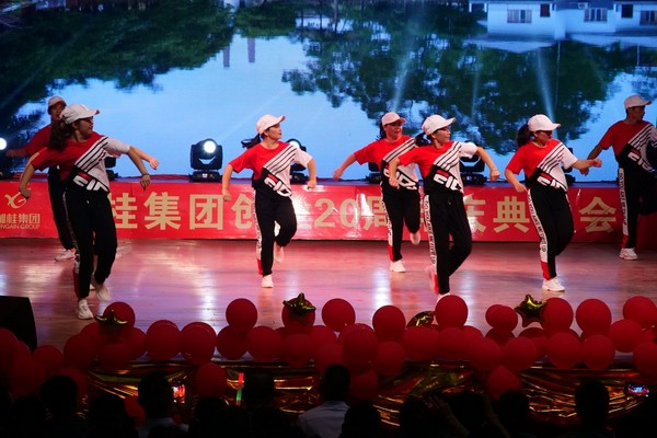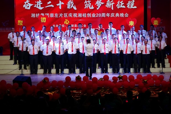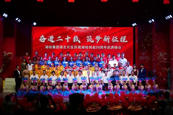 2020年9月10日晚,湘桂集團崇左片區慶祝湘桂創業20周年慶典晚會在大新湘桂公司文化城舉行,晚會以“奮進二十載 筑夢新征程”為主題,回顧了湘桂20年來的發展歷程和成就,充分展現了湘桂人愛黨、愛國、愛湘桂的深厚情懷和激情澎湃、絢麗多彩的湘桂企業文化。