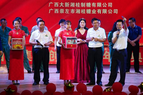 謝華誠在致辭中向關心和支持湘桂集團發展的各級黨委、政府及各職能部門、金融機構、合作伙伴、廣大客戶及蔗農朋友致以崇高的敬意!向團結拼搏、辛勤付出、默默奉獻的全體湘桂人致以衷心的感謝!向蒞臨慶典晚會的領導、嘉賓、員工同志們表示熱烈的歡迎!他表示,二十年來,湘桂始終堅定“永遠跟黨走”的理想信念,踐行“艱苦創業、誠信經營、回饋社會、奉獻國家”的經營宗旨,積極履行社會責任,助力脫貧攻堅,累計投入15.36億元,幫助當地農民年人均收入從3000元增長到3萬元,用實際行動詮釋了民營企業的責任擔當!二十年來,湘桂集團及各下屬公司先后榮獲全國先進基層黨組織,全國“五一”勞動獎狀,全國職工教育培訓示范點、全國模范職工之家、第十一屆全國職工職業道德建設標兵,全國、自治區萬企幫萬村精準扶貧行動先進企業等100多項榮譽,被列為廣西區非公有制經濟組織黨建示范單位;連續多年被列為中國十大制糖集團、中國民營500強,廣西優秀企業100強、廣西民營企業50強。榮譽的獲得體現了國家、自治區各級黨委、政府及社會各界對湘桂永遠跟黨走、積極參與精準扶貧工作、勇于承擔社會責任的高度認可。湘桂集團將進一步優化制糖產業布局,做強做優蔗糖循環經濟建設,強化“對標定標追標”工作和降本增效、精細化管理,不斷提高生產經營管理水平,提高綜合經濟效益,為推動廣西糖業“二次創業”高質量發展,為建設壯美廣西,共圓復興夢想而努力奮斗!