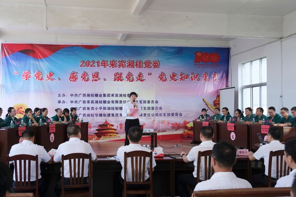 為慶祝中國共產黨成立100周年,深入貫徹落實習近平總書記“七一”重要講話精神, 9月17日,中共廣西湘桂糖業集團來賓湘桂委員會在來賓湘桂公司開展“學黨史,感黨恩,跟黨走”黨史知識競賽活動。來賓湘桂黨委下屬來賓湘桂公司黨總支部,小平陽湘桂公司黨總支部,湘桂紙業公司黨總支部組成的6支代表隊,進行了激烈的角逐。