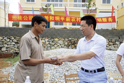 8月12日,湘桂公司在新和鎮垌平新村舉行了幫扶該村新農村建設現場服務儀式,新和鎮黨委副書記、鎮長彭江河等鎮領導干部及湘桂公司朱光彩總經理、黃敏初副總經理等領導參加了儀式。