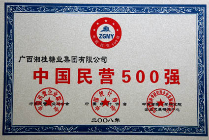 由中國民營企業(yè)聯(lián)合會、中國統(tǒng)計協(xié)會、中國管理科學研究院企業(yè)發(fā)展研究中心聯(lián)合發(fā)起的2008年度中國民營500強評審工作已于日前揭曉。廣西湘桂糖業(yè)集團有限公司榜上有名,榮獲“中國民營500強”稱號。