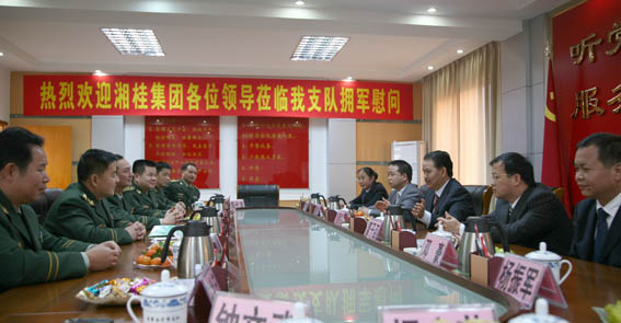 新春佳節來臨之際,1月16日下午,湘桂集團董事局主席、集團總裁勞建銘率集團部分董事和高管成員來到武警南寧市支隊看望慰問支隊官兵,與他們歡聚一堂舉行了座談會,并向中隊官兵送上了慰問品及節日的問候。武警南寧支隊長陳東、政委龍文成等支隊領導參加了座談會。