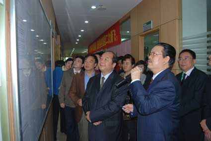交流考察團一行隨后在湘桂集團三樓多功能會議廳觀看了湘桂集團宣傳短片,并與下屬湘桂公司黨委就學習實踐活動進行了遠程互動交流。考察團組長自治區非公有制經濟組織學習實踐活動領導小組副組長、指導組組長,自治區黨委統戰部副部長、自治區工商聯黨組書記馮成善同志對湘桂集團的黨建工作及學習實踐科學發展觀活動開展情況予以了充分肯定。他說:從此次考察交流可以看出,湘桂集團對黨建工作十分重視,集團黨委書記高度重視學習實踐活動的開展,全體員工特別是黨員同志對學習實踐活動認識到位、學習認真、調研深入,學習形式靈活多樣,實施“外出學”、“遠程學”、“網絡學”、“一帶一、一帶多”等學習方式,獨具湘桂特色;湘桂集團黨委在企業內部奠定了扎實的政治理論基礎,黨組織的政治堡壘作用和黨員同志的先鋒模范作用效果明顯,有效促進了湘桂集團事業的發展,富有學習創新、銳意進取精神的湘桂集團必將取得更大的輝煌。