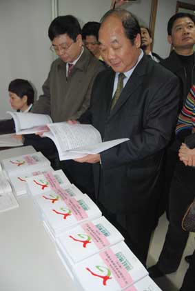書記馮成善同志翻看湘桂集團黨委黨員學習筆記。