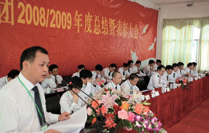 集團副總裁刁曉主持2008/2009年度工作總結暨表彰大會。