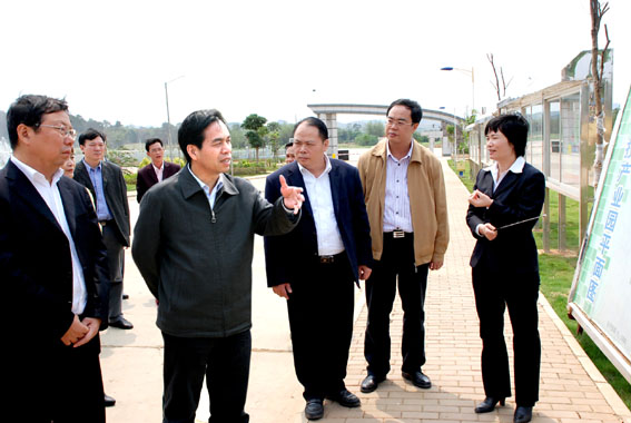 市長(zhǎng)黃克(右三)、江州區(qū)區(qū)長(zhǎng)秦昆(右二)等人的陪同下考察湘桂循環(huán)經(jīng)濟(jì)產(chǎn)業(yè)園,湘桂集
